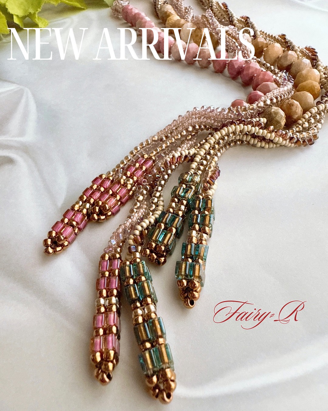 材料:丸小、丸大、フォシルコーラル、スクエアビーズ
