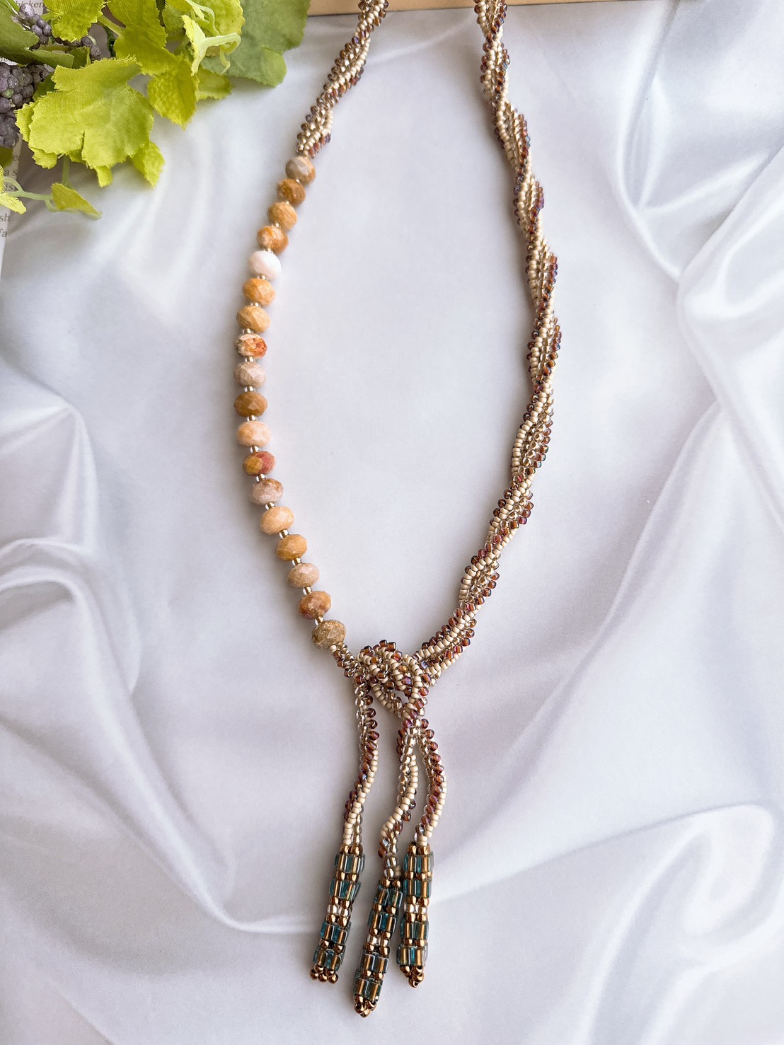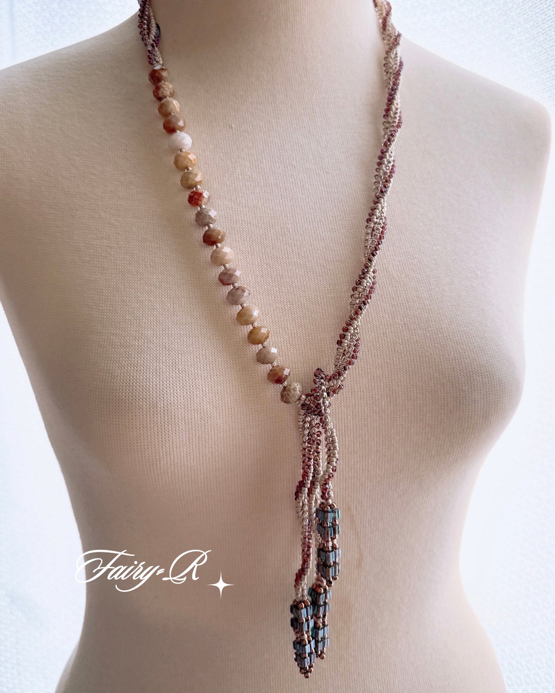 素材と色味のニュアンスを楽しむラリエットネックレス